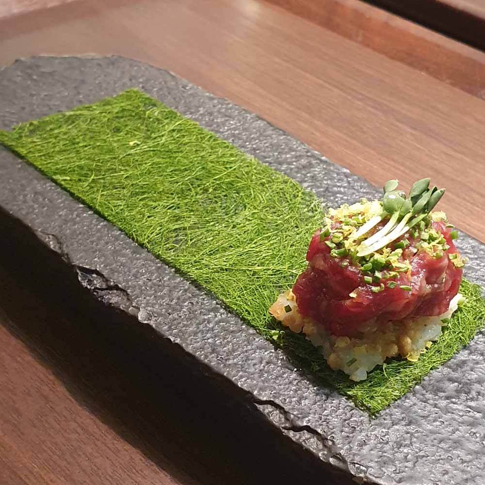 세번째로 나온 음식은 감태입니다. 육회에 파래김을 싸서 먹을 수 있게 해주셧는데요. 시원하고 살짝 아삭한 맛이 기억에 남고 맛있었습니다.