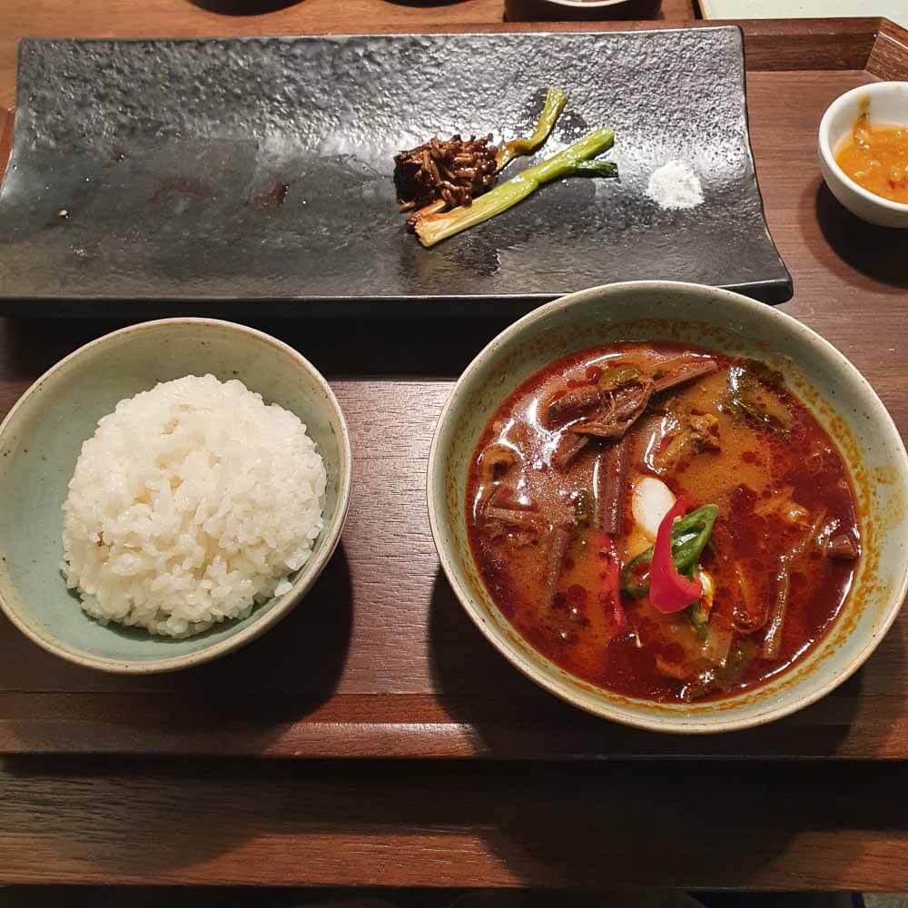 고기를 먹고 나면 붉은 소고기 국이랑 밥도 이렇게 줍니다. 역시 한국인은 마무리는 밥인가.